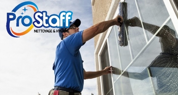 PROSTAFF nettoyage, entretien et désinfection, vous propose son service de nettoyage des vitres : façades vitrées, fenêtres, vitres en hauteur, portes-fenê...
